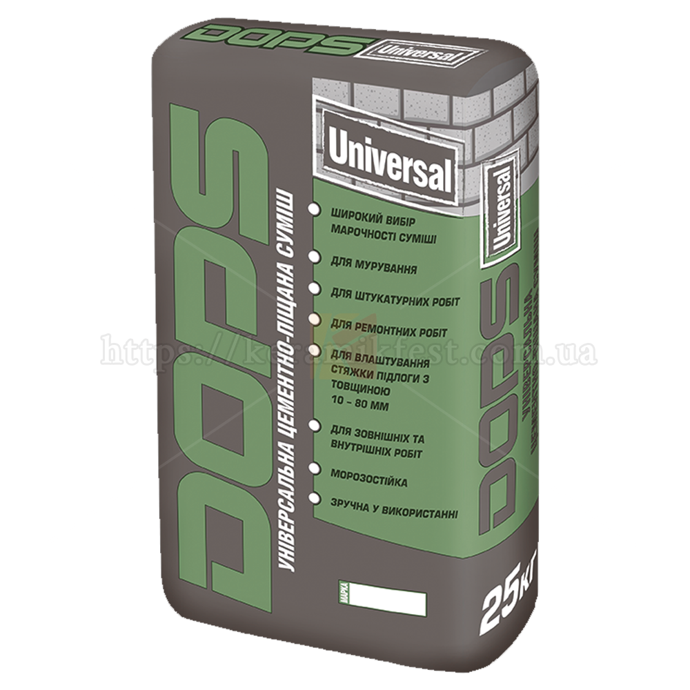 Dops Universal 25 кг – это универсальная цементно-песчаная смесь, которая станет незаменимым помощником при строительстве и ремонтных работах. Эта качественная смесь производится в Украине с использованием современной технологии, что гарантирует ее высокое качество и надежность.